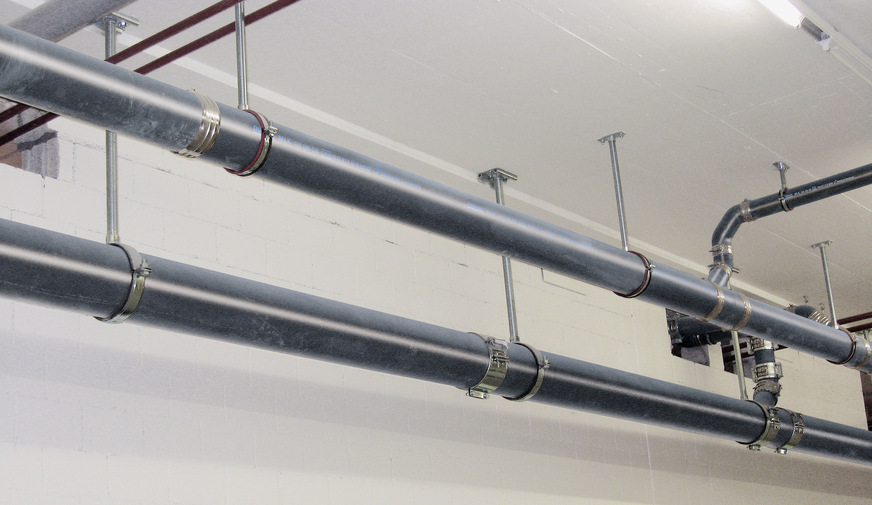 In der Regel ist dann eine brandschutztechnische Kapselung durch die Verlegung innerhalb von Unterdecken, Bodenkanälen oder Installationsschächten mit einer Feuerwiderstandsdauer von 30 Minuten (F 30) erforderlich (Bild 3). Nicht brennbare Leitungen, zum Beispiel gusseiserne Abflussrohrsysteme, dürfen in Flucht- und Rettungswegen frei verlegt werden (Bild 4).