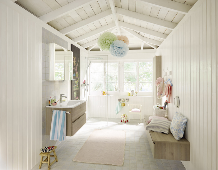 In Kombinationen mit Badewannen, mit Soft-Close ausgestattetem WC, Ergänzungsschränken, Regalen und Sideboards, Spiegel und Spiegelschränken eröffnet Bel individuelle Gestaltungsoptionen bei variabler Frontgestaltung. Neu hinzugekommen ist eine Thermoformfront in Eiche Dekor Mokka. Weiterhin im Programm sind skandinavisch-freundliche Holzdekore wie Eiche Flanelle und Cashmere sowie frische Lackfarben wie Hellrot und Schilf.
