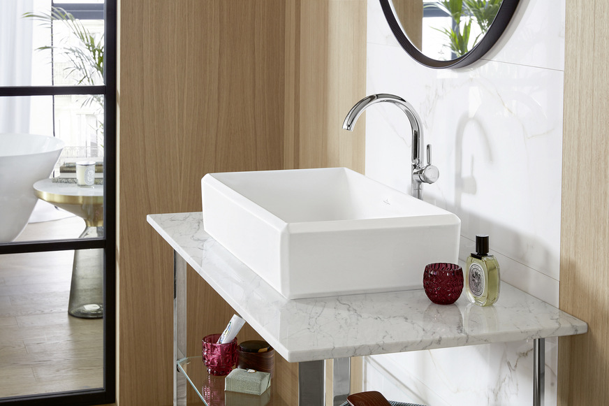 Klare Linien, edle Materialien und geometrische Konturen: der renommierte Designer Christian Haas ließ sich für die Kollektion Antheus von Art Déco und Bauhaus-Design inspirieren. Highlights der Produkte sind der einzigartige Facettenschliff sowie der außergewöhnliche Materialmix aus Keramik, Quaryl, Marmor und Echtholz. Der Aufsatzwaschtisch aus TitanCeram vereint in 65 cm eine strenge, kubische Außenform mit fließend weichen Flächen im Innenbecken. Hochwertige Marmorplatten setzen den Aufsatzwaschtisch in Szene. Alternativ gibt es einen 100er Schrankwaschtisch mit beidseitiger Ablage – der passende Waschtischunterschrank ist wahlweise wandhängend oder mit bodenstehendem Stahl-Gestell in Hochglanz in zwei Echtholzfurnieren erhältlich. Die Quaryl-Badewannen der Kollektion sind präzise geformt und dauerhaft glänzend. Designhighlights sind ein geschwungenes Gestell aus poliertem Edelstahl sowie die smarte Ausstattung ViFlow. ViFlow ist der ästhetische Ablauf für Badewannen ohne Überlauf, da er direkt in den Ablauf unter der Wanne integriert wird. Alternativ ist die Badewanne als Theano-Variante ohne Gestell erhältlich. Das wandhängende, spülrandlose DirectFlush-WC überzeugt mit technischen Besonderheiten, wie der Quick Release- und SoftClosing Funktion und dem stilprägenden Facettenschliff. Statt eines Bidets kann die Kollektion mit dem passenden Dusch-WC ViClean-I 100 kombiniert werden. Verschiedene Möbel- und Spiegelmodelle runden die Kollektion ab.