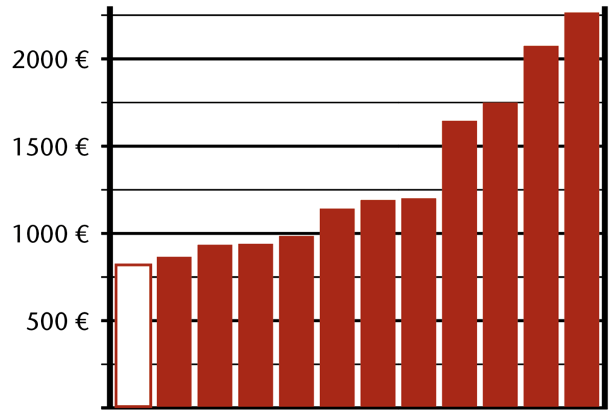 Keramikkörper: HWB 40 cm; asym. mit verk. Ausladung 40, 50 cm; mit Ablagefläche 45, 50 cm; Eck-HWB 45 cm (mit Hahnloch, mit Überlauf); WT 55, 60, 65 cm; Eck-WT 69,5 cm; Halbsäule für WT/HWB; Tiefspül-WC mit verk. Ausladung auch eckig (wandhängend, spülrandlos)