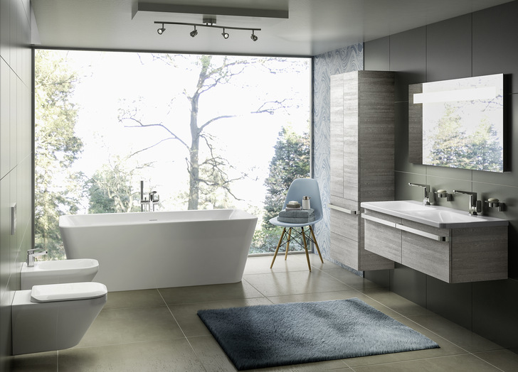 Die eleganten Toiletten sind erstmals mit der neuen AquaBlade-Spültechnologie ausgestattet. Dieses System verbindet ästhetisches Design mit perfekter Funktionalität. Das WC-Becken wird rundum hygienisch gereinigt. Die Acrylwannen sind sowohl als frei stehende Solitärlösung, als Vorwandwanne mit gerader Rückseite zur Wandanbindung oder auch als klassische Einbauvariante verfügbar.