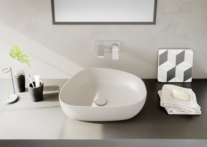 Options kombiniert als Best-of Elemente aus unterschiedlichen, ehemals eigenständigen VitrA-Badkollektionen und bietet so eine unvergleichliche Vielfalt an Einrichtungsoptionen. Egal ob rund, quadratisch oder dreieckig, wandgebunden oder frei stehend, die Sanitärkörper aus Serien wie Outline, Water Jewels, Nest, Nuo, Nuovella und Geo liefern den passenden Ansatz für den persönlichen Geschmack. Dabei überzeugt jedes einzelne Element durch vollendetes Design. Farblich zeigt sich die Keramik bei der von Matteo Thun entworfenen Serie Water Jewels mal prunkvoll in Gold, Kupfer und Platinum oder bunt in Terracotta-Türkis bzw. -Blau. Die aus dem High-End-Werkstoff Cerafine gefertigten Outline Aufsatzschalen gibt es neben Weiß und Schwarz auch in den matten Erdtönen Taupe und Nerz. So lassen sie sich entweder der Keramik anpassen oder gezielt damit in Kontrast setzen.