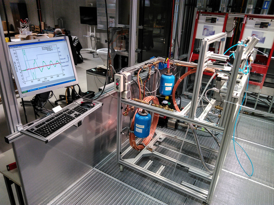 Messerschmid: Durch meine Schadensgutachten interessierte ich mich zunehmend für das Phänomen der Druckschläge. Vor einigen Jahren konnte ich dann einen Studenten davon überzeugen, dass er im Rahmen seiner Bachelorarbeit für unser Labor einen Prüfstand konzipiert und baut, mit dessen Hilfe Druckschläge an Einhebelmischern gemessen werden können. Dieser Prüfstand entspricht in der wesentlichen Ausstattung den einschlägigen Regelwerken, sodass damit DIN-konforme Produkttests durchgeführt werden können. 2019 kam dann die SBZ auf mich zu mit der Idee, an mehreren Waschtisch-Einhebelmischern verschiedener Hersteller das Druckstoßverhalten zu untersuchen. Das war der Beginn dieser nun hier vorgestellten Messserie.