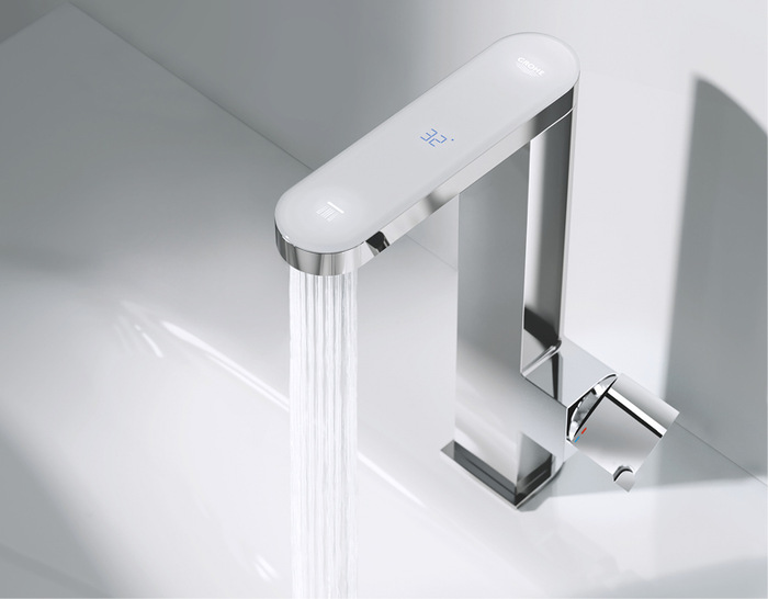 Grohe hat die Sanitärarmaturen der Plus-Kollektion einem digitalen Update unterzogen. Die Version mit integriertem LED-Display auf dem Auslauf zeigt jederzeit genau an, wie warm oder kalt das Wasser ist: Je nach Temperatur wechselt die Farbe der angezeigten Gradzahl von Blau zu Rot. Dies ermöglicht dem Nutzer, die Wassertemperatur genau auf seine Bedürfnisse anzupassen und zu kontrollieren. Sobald der Wasserfluss stoppt, erlischt die Temperaturanzeige. Darüber hinaus bietet die Kollektion weitere Funktionen für mehr Nachhaltigkeit beim Händewaschen: Mithilfe eines Infrarotsensors am Auslauf kann der Nutzer durch ein berührungsloses Wischen über das leuchtende Symbol auf der Armatur-Oberseite vom Standardstrahl zum wassersparenden Eco-Strahl wechseln (Durchfluss von 4 l pro Minute). Neben klassischen Einhebelmischern in unterschiedlichen Größen sowie 2- und 3-Loch Waschtischbatterien umfasst das Portfolio ein erweitertes Angebot für Wannen-, Dusch- und Bidetarmaturen.