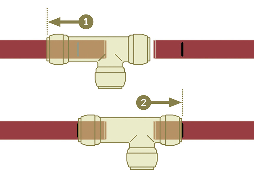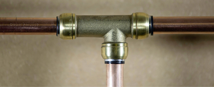 Für das nachträgliche Einfügen von Abzweigen in Kupferrohrleitungen gibt es von John Guest mit dem T-Schiebeverbinder Sharkbite nun eine schnelle und einfache Installationslösung – ohne Löten und Verpressen sowie auch bei nassem Rohr. Der DVGW-konforme Schiebeverbinder wird dafür auf die offenen und sauber entgrateten Rohrenden geschoben und entsprechend der vorher am Rohr angebrachten Markierungen positioniert.