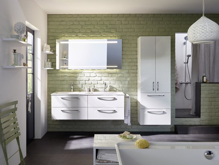 Badmöbel: Waschtischunterschränke mit Türen oder Auszügen. Spiegelschränke und Leuchtspiegel mit LED-Beleuchtung, halbhohe Schränke, Hochschränke, Hängeschrank, Unterschränke, Sideboard, Ganzkörperspiegel