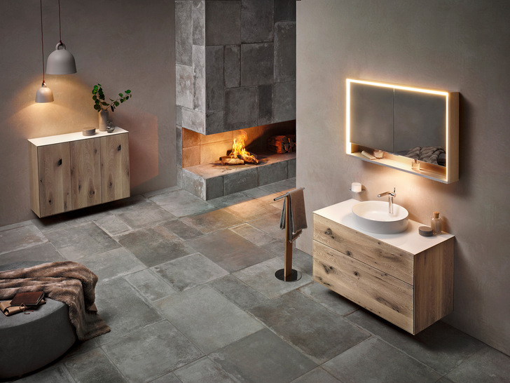 Keuco hat zudem im Bereich der Waschtische, Armaturen und Spiegelschränke das Sortiment der Edition Lignatur erweitert. Damit eröffnen sich vielfältige Gestaltungsmöglichkeiten für exklusive Bäder mit hochwertigem Massivholz. Einzel- oder Doppelwaschtischlösungen, eingelassene oder aufgesetzte Waschtische, Sideboards, Hoch- und Mittelschränke sowie Sitzbänke stehen zur Wahl. Die Unterbauten für runde Waschtische sowie Sideboards und Mittelschränke sind optional mit Keramik- oder Glasabdeckplatten erhältlich. Außerdem bietet der Hersteller praktische Standaccessoires, passend in Design und Holzart, die flexibel im Bad positioniert werden können. Für ein durchgängig stimmiges Bild zeigt sich auch der Spiegelschrank der Edition Lignatur mit Elementen aus den Naturhölzern.