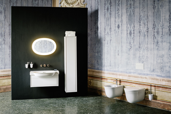 Zur Kollektion gehören Waschtische und Waschtischschalen, WCs, ein Bidet und eine Badewanne in der charakteristischen Formensprache. Dazu passen Armaturen, Spiegel und Accessoires sowie eine elegante Möbelkollektion in reduziertem Design, die The New Classic zu einem kompletten Angebot für das Bad machen.