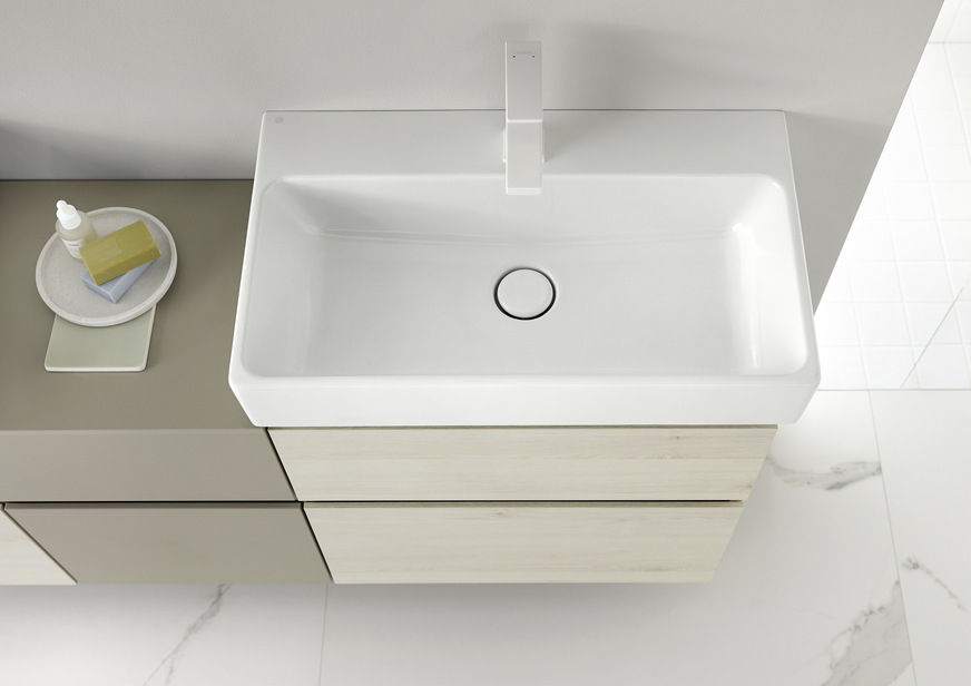 Lin20 bringt Aufgeräumtheit und Klarheit in Bäder jeglicher Größe. Dank platzsparender Waschtischlösungen und modularen Schranksystemen, die an moderne Küchenzeilen erinnern.