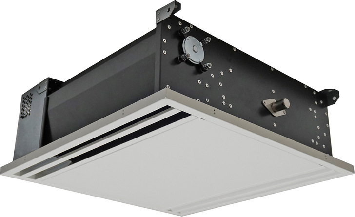 Das Deckeneinbaugerät UVC Sterilventilation mit einer Bauhöhe von 21 cm dient der Verringerung der aerosolbedingten Virenlast im Raum. Mit einer Luftmenge von ca. 250 m3/h wird das Volumen eines 60 m2 großen Raumes laut Hersteller ein- bis zweimal pro Stunde entkeimt.