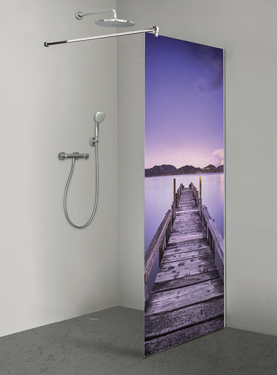 Ein Hingucker: Strahlende Motive auf Walk-in-Glasduschen bietet Sprinz mit der Inloop-Serie an. Mittels optimiertem keramischen Digitaldruck, der sich auf der Außenseite der Glasdusche befindet, leuchten die Motive klarer und intensiver. Er kann teil- oder vollflächig aufgebracht werden. Der teilflächige Sichtschutz ist 70 cm hoch und beginnt in 70 cm Höhe. Die Farbe wird in das Glas eingebrannt und ist so sicher gegen Flecken, Abrieb, Kratzer oder Verblassen geschützt. Aus der Kollektion können entweder vorhandene Motive für die Duschabtrennung gewählt werden oder aber Kunden steuern ein individuelles Foto als Vorlage bei. Die frei stehende Walk-in-Glasdusche Inloop lässt das Bad größer und offener wirken. Das 8 mm starke Weißglas schließt mit einem dezenten U-Profil direkt an die Wand an, es gibt eine passende Haltestange dazu. Erhältlich ist sie zudem auch in der Farbvariante Schwarz.