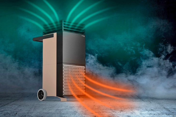Der professionelle Luftreiniger TAC V+ ist für die Virenfilterung in stark frequentierten Innenräumen entwickelt worden. Der Reinluftvolumenstrom mit dem serienmäßigen H14-HEPA-Filter beträgt bis zu 1200 m3/h, bis zu 2000 m3/h mit einem optional erhältlichen H14-Ultra-HighFlow-Filter und bis zu 2400 m3/h mit einem H13-Ultra-HighFlow-Filter.