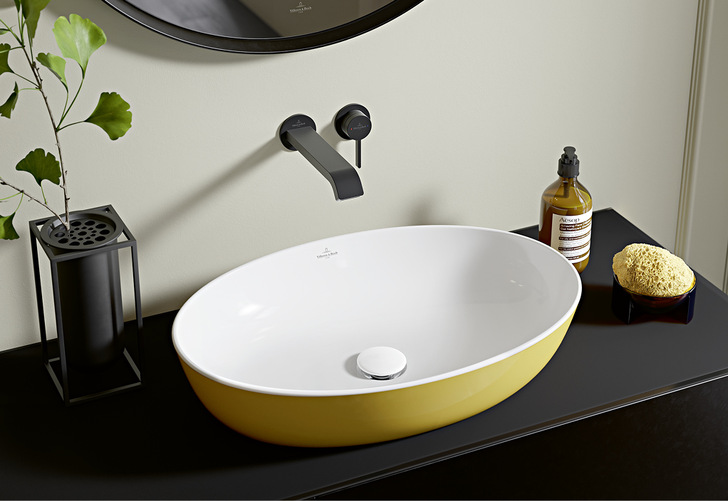 Villerroy & Boch hat die Bicolour-Waschtischserie Artis um Farb-Akzente erweitert: Mit Indian Summer, Sage Green, Rust und Bordeaux erobern satte Farben den Waschplatz. Die Aufsatzwaschtische sind in den vier Formen rund, oval, quadratisch und rechteckig erhältlich und können mit Möbeln der Kollektionen Finion und Legato kombiniert werden. Unverändert ist das Bicolour-Konzept der neun Varianten: Während die Außenseite farbige Akzente im Bad setzt, ist die Innenseite in glänzendem Weiß-Alpin gehalten. Die präzise gesetzte Umlaufkante macht den Kontrast noch plastischer und betont die filigrane Anmutung der Aufsatzwaschtische aus Titan-Ceram.