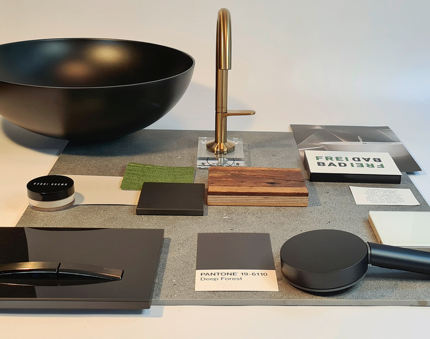 André Höbing: Wir müssen unsere Kunden heutzutage gewissermaßen auf eine Reise in ihr neues Bad mitnehmen – wie viele verschiedene Möglichkeiten und wechselnde Trends es auf diesem Gebiet gibt, beschäftigt uns regelmäßig bei der Planung von Badausstellungen. Eine individuelle Planung, in der die persönlichen Kundenwünsche berücksichtigt wurden, hilft dabei ebenso wie eine hochwertige Visualisierung. Gerade das haptische Erlebnis in der Badausstellung macht den Unterschied zwischen einer persönlichen Beratung und der Auswahl im Internet aus. Neben der Visualisierung ist die Präsentation anhand von Moodboards ein entscheidender Unterschied, der uns hilft, die Kunden zu überzeugen. Kunden sollen die Materialien anfassen, fühlen und erleben!