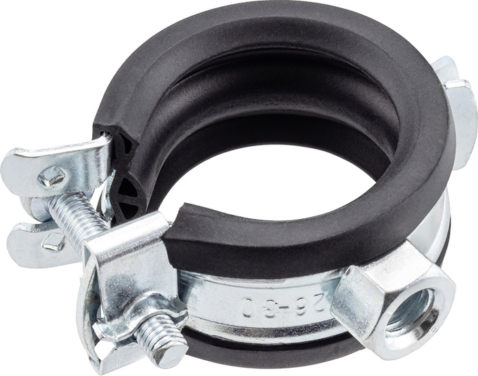 Darüber hinaus zeichnet sich die neue Rohrschelle durch einen leistungsfähigen Schallschutz aus, für den spezielle Luftkammern in der Einlage aus Ethylen-Propylen-Dien-Kautschuk (EPDM) sorgen. Die Konstruktion stellt sicher, dass die Schallschutzpolster des Profilgummis beim manuellen Schließen der Schelle nicht gequetscht werden und die Schallschutzfunktion nicht beeinträchtigt wird. Das Profilgummi ist an den Enden verklebt, um ein Verrutschen zu verhindern.