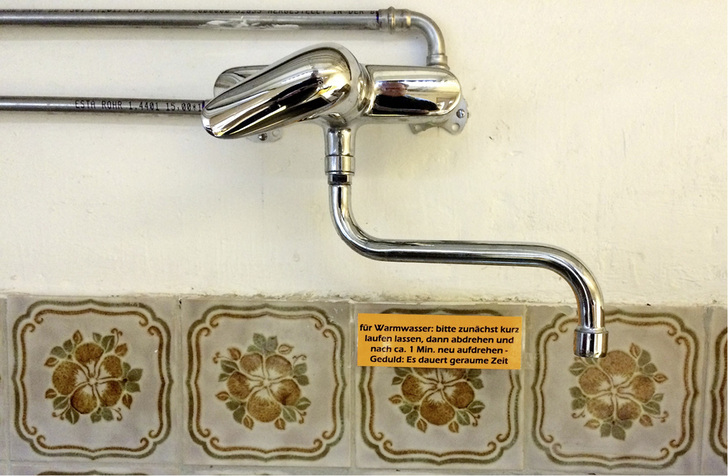 Die Feststellung der Mängel erfolgt zunächst durch eine Ortsbegehung und Prüfung der Trinkwasserinstallationen auf Einhaltung der allgemein anerkannten Regeln der Technik (§ 16 Absatz 3 und Absatz 7 Nr. 2 TrinkwV). Im Sinne der Richtlinie ist jede Abweichung von den allgemein anerkannten Regeln der Technik grundsätzlich ein Mangel. Wenn Informationsbroschüren, Leitlinien und Merkblätter von Vereinen oder Berufsverbänden dann zwischen „noch regelkonformen Schwachstellen“, „leichten regelwidrigen Defiziten“ oder „gravierenden regelwidrigen Defiziten“ unterscheiden, ist diese Bewertung weder zielführend noch den a.a.R.d.T. entsprechend ( Bild 1 ).