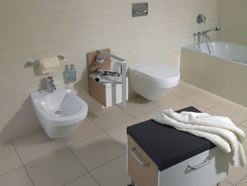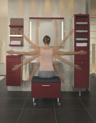 Die neue Kollektion Lifetime, deren Konzept von dem renommierten Designer Reiner Moll stammt, umfasst alle Aspekte der modernen Badeinrichtung, von anspruchsvoller Ästhetik über funktionalen Komfort bis hin zur Ergonomie und raffinierten Details. Lifetime ist mit zahlreichen, komfortablen Features ausgestattet. Viele von ihnen sind elegant „verborgen“ wie die Haltegriffe unterhalb des Waschtischs. Die Multifunktionalität und Variabilität vieler Elemente erhöht den Nutzungskomfort: Der Rollenhalter am WC ist mit einem Griff ausgestattet, der bei Bedarf das Aufstehen erleichtert. Der Seitenschrank am Waschplatz bietet variablen Stauraum. Der Hochschrank mit Ganzkörperspiegel ist durch einen Drehmechanismus gekennzeichnet, so dass seine einzelnen Fächer und Schubladen leicht zu erreichen sind. Der fahrbare Trolley ist so konzipiert, dass die Badbenutzerin oder der Badbenutzer ihn auch als Sitzbank verwenden kann, da er oder sie viele Tätigkeiten bequemer im Sitzen ausführt wie etwa Rasieren oder Schminken. Von der Position des beweglichen Trolleys aus liegt alles wie in einem Cockpit im Greif- und Streckbereich des Sitzenden, vor allem die Fächer, Ablagen und Schubladen des drehbaren Hochschranks. Die Abmessungen aller Produkte der Serie Lifetime sind so angelegt, dass sie einen optimalen Bewegungsradius bieten.