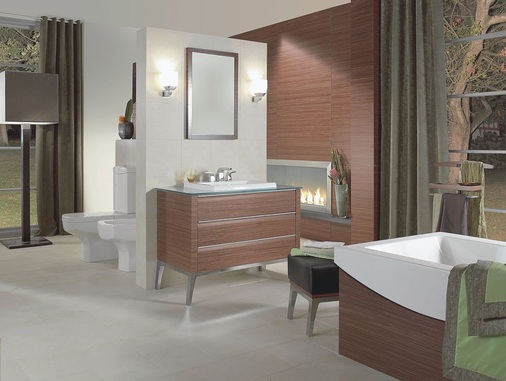 Das vielseitige Möbelprogramm ist nicht nur dem Bad vorbehalten und beinhaltet verschiedene Waschtischunterschränke und einen Hochschrank mit integriertem Ganzkörperspiegel. Für den Einbauwaschtisch wurde ein Unterschrank mit zwei Auszügen entwickelt. Ein Spiegelschrank, zwei verschiedene, beleuchtete Spiegel mit Holzrahmen und ein kleiner Spiegel ohne Beleuchtung für das Handwaschbecken ergänzen die Auswahl. Die dazu passende Armaturenserie Square Vogue umfasst eine Dreiloch-Batterie für Waschtisch und Bidet und eine Batterie mit separater Brause für die Badewanne, die auf dem Wannenrand montiert wird.