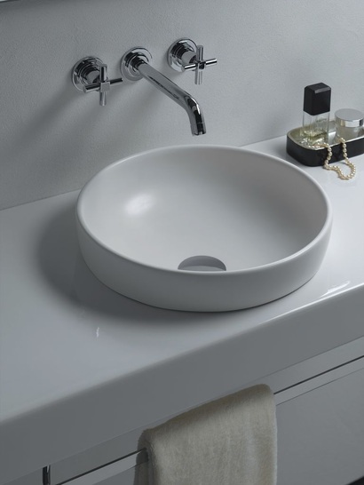 Mit Water Jewels hat Matteo Thun für Vitra eine interessante Badkollektion geschaffen. Die persönliche Handschrift des renommierten Designers zeigt sich in den freistehenden Waschschüsseln, die aus außergewöhnlichen Materialien wie Terrakotta, Glas, Marmor oder sogar Teakholz bestehen. Insgesamt sorgen elf, in Material und Farbe unterschiedliche Varianten, für persönliche Gestaltungsmöglichkeiten und bilden mit den klassisch weißen Konsolen einen interessanten Gegensatz. Dazu gibt es Abdeckplatten, die entweder farblich angepasst oder ganz bewusst in Kontrast gesetzt werden können. Waschschalen und Abdeckungen nehmen die Formensprache der Sanitärkörper auf und fügen sich so nahtlos ins Gesamtbild ein. Water Jewels verleiht dem Badezimmer eine harmonische Optik.