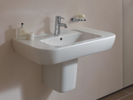 Handwaschbecken 45 cm, Waschtisch 60 cm, Waschtisch 55, 65 cm, Waschtisch 65 cm mit geringer Ausladung, Waschtisch 85 cm, Waschtisch 80 cm mit breiten Ablageflächen, Eckwaschtisch 40 cm, Doppelwaschtisch 130 cm, Halbsäule, Wand-WC flach, Wand-WC tief, Wand-WC mit geringer Ausladung, WC-Kombination, Wand-Bidet, Stand-Bidet, Urinal mit oder ohne Deckel