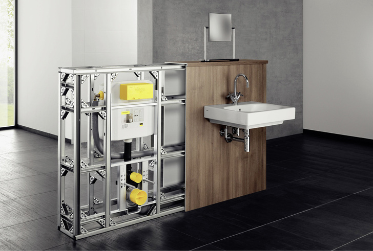 Nicht von ungefähr hat die Trockenbautechnik als Einzelelementmontage (mit stabilem Rahmen) oder als Trockenbaumontagesystem (mit einem stabilen Grundgerüst) ihren festen Platz in der Gebäudetechnik gefunden. Dazu addiert sich als Metallständerwandkonstruktion ein zunehmender Marktanteil im Wohnungsbau. Bei dieser Ausbaumethode wird aus der Vorwand- eine Inwandtechnik, da die Elemente flächenbündig in die Metallständer integriert werden. Hier spielen die flexiblere und leichtere Bauweise im Vergleich zu einer gemauerten Wand sowie die kostengünstige Bauausführung eine wichtige Rolle. Im privaten Bereich kommen Trockenbauelemente meistens als Einzelinstallation (WC, WT etc.) vor einer Massivwand zum Einsatz. Die Rahmen der Elemente können direkt beplankt werden. Für besondere Anwendungen halten einige Hersteller auch Bausätze für die Nischen- oder Eckmontage vor.