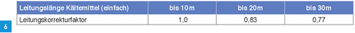 Der Leitungskorrekturfaktor ergibt sich aufgrund einer Leitungslänge von 15 m (einfache Länge) als Mittelwert von 1,0 und 0,83 ( Bild 6 ) zu Leitungskorrekturfaktor = 0,92: