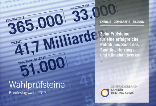 Ebisch: ... deshalb kommt auch noch etwas Wichtiges hinzu. Der ZVSHK hat in Anlehnung an die Wahlprüfsteine Fragen gestellt – wie schon zur letzten Bundestagswahl – an die Parteien CDU/CSU, SPD, FDP, Die Linke sowie Die Grünen. Dabei geht es um Energie, Demografie sowie Bildung. Die Antworten dazu sammeln wir und stellen sie zum Vergleich nebeneinander.