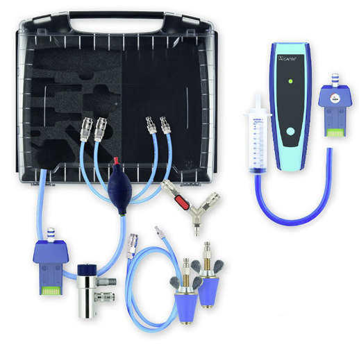Der Dichtprüfkoffer CAPBs Set DPK 60-6 sens von Afriso-Euro-Index kann für Druckprüfungen nach DVGW-Arbeitsblatt G600, zur Dichtheits- und Belastungsprüfung an Gasleitungen sowie zur Dichtheits- und Festigkeitsprüfung bei Trinkwasserleitungen nach ZVSHK eingesetzt werden. Das Set umfasst das Sensormodul Druck CAPBs sens PS40 (6bar, Ø8mm), ein Abdrückventil mit Schnellkupplung und Feinstregulierventil, eine Hand-Ballpumpe mit Ventil, Y-Verbinder und Verbindungsschläuche inklusive Prüfstopfen mit Stecknippel und einen Systemkoffer. Für Messungen ist noch der Basisgriff CAPBs BG10 erforderlich, erweiterbar ist das Set durch den DVGW-zertifizierten Drucksensor CAPBs sens PS33 zur Gasleckmengenmessung. Dieser verfügt über eine barometrische Druckermittlung zum Ausgleich von Luftdruckschwankungen während der Messung sowie eine Temperaturkompensation. Die Messdaten können vor Ort in der kostenlosen App EuroSoft live / Eurosoft mobile über ein Smartphone oder Tablet dargestellt und digital weiterverarbeitet werden.