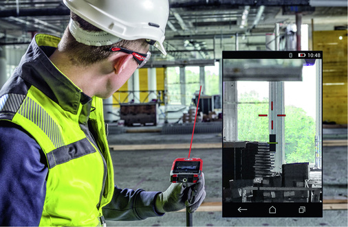 Das Laserdistanzmessgerät PD-C von Hilti kombiniert bewährte Funktionen moderner Distanzmessgeräte mit professionellen Dokumentationslösungen und Software-Applikationen. Das PD-C besitzt ein großes Touchscreen-Display, eine leistungsfähige Kamera für detailgetreue Baustellenfotos und kann bis zu 3000 Messungen inklusive Fotos in einer Projektstruktur dokumentieren und diese per Bluetooth oder USB übertragen. Über die integrierte Funktion „Im Bild einzeichnen“ können Lasermessungen direkt in ein Foto der Baustelle eingezeichnet werden. Dies ermöglicht eine saubere Dokumentation der Messergebnisse und vermeidet Verständnis- und Übertragungsfehler. Alle Messergebnisse und Bilder werden in einer individuellen Projektstruktur gespeichert und können im Anschluss in einen professionellen PDF-Bericht und auf das Smartphone oder einen PC übertragen werden. Das PD-C ist für raue Umgebungen geeignet und lässt sich sogar mit Arbeitshandschuhen bedienen. Durch die Schutzklasse IP54 ist das Gerät vor Sprühwasser und Staub geschützt.