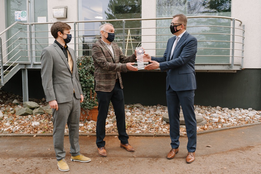 Der mit großer Mehrheit gekürte Sieger des Unternehmerpreises, die Grötsch-Energietechnik aus Hersbruck im Nürnberger-Land, konnte aufgrund der Corona-Krise erst jetzt mit einem Jahr Verzug den Preis aus den Händen von ZVSHK Michael Hilpert entgegennehmen. „Corona hat unsere Planungen für eine große feierliche Preisverleihung mehrfach durchkreuzt“, erklärt Michael Hilpert. Die zunächst für die IFH/Intherm im April 2020 vorgesehen Preisübergabe musste ebenso abgesagt werden, wie die weiteren in Aussicht genommenen Termine auf der SHK Essen im September und letztlich auf der Mitgliederversammlung des ZVSHK im November diesen Jahres.