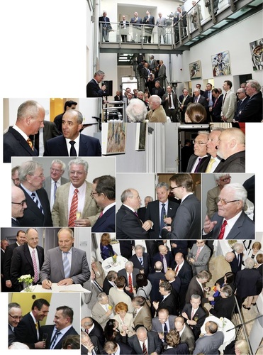 Am Abend der Mitgliederversammlung am 8. Mai lud der ZVSHK zu einem Frühjahrsempfang in die Potsdamer Geschäftsstelle. Rund 100 Repräsentanten aus Politik, Wirtschaft und Handwerk erfüllten den Branchentreff mit Leben. Dabei boten sich genügend Gelegenheiten, in zwangloser Runde neue Ideen ins Gespräch zu bringen und für das SHK-Handwerk wichtige Entwicklungen zu erörtern. Zudem gab es eine Ausstellung des Künstlers Helmut Thoma unter der Überschrift „Auf den Spuren der modernen Malerei“ in den Räumen des Zentralverbandes zu entdecken.