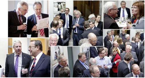 Den Abend der Mitgliederversammlung nutzte der ZVSHK zu einem Frühjahrsempfang. Etwa 100 Gäste aus Politik, Wirtschaft und Kultur folgten der Einladung in die Geschäftsstelle des Zentralverbandes am Neuen Markt in Potsdam. ZVSHK-Präsident Manfred Stather zeigte sich in seiner Begrüßungsrede über die Entwicklungen der letzten Monate zufrieden: „Innerhalb unserer Branche sind wir – nicht nur in der Frage der Nachwuchssicherung – wieder auf einem guten Weg der Annäherung. Ich habe das Gefühl, es wächst in den beteiligten Branchenverbänden die Erkenntnis, dass ein geschlossener Außenauftritt für alle Beteiligten zielführender ist als das ausschließliche Beharren auf Eigeninteressen. Vor allem ihre Wahrnehmung von Seiten der Politik wird hierdurch neue Impulse erhalten.“